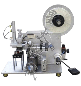 当传感器检测到产品到位或脚踩发出产品到位信号,吸着标签的吸头下行贴标并覆标,然后退回原位吸附下一张标签,等待下一个贴标信号,一张标签的贴附动作完成。
