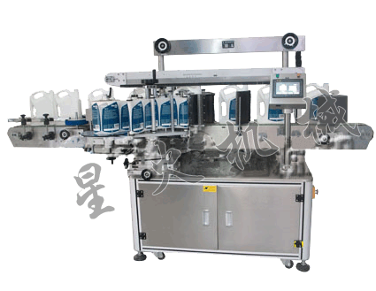 全自动双侧面贴标机(XH-T-71200)适用于圆瓶、方瓶、扁瓶的单面和双侧面贴标,如日常生活中洗发水扁瓶,洗衣液扁瓶、润滑油扁瓶,洗手液圆瓶、消毒液圆瓶等双侧面贴标,两面同贴,双侧面贴提高企业生产效率,广泛应用于日化、化妆品、石化、医药等行业。